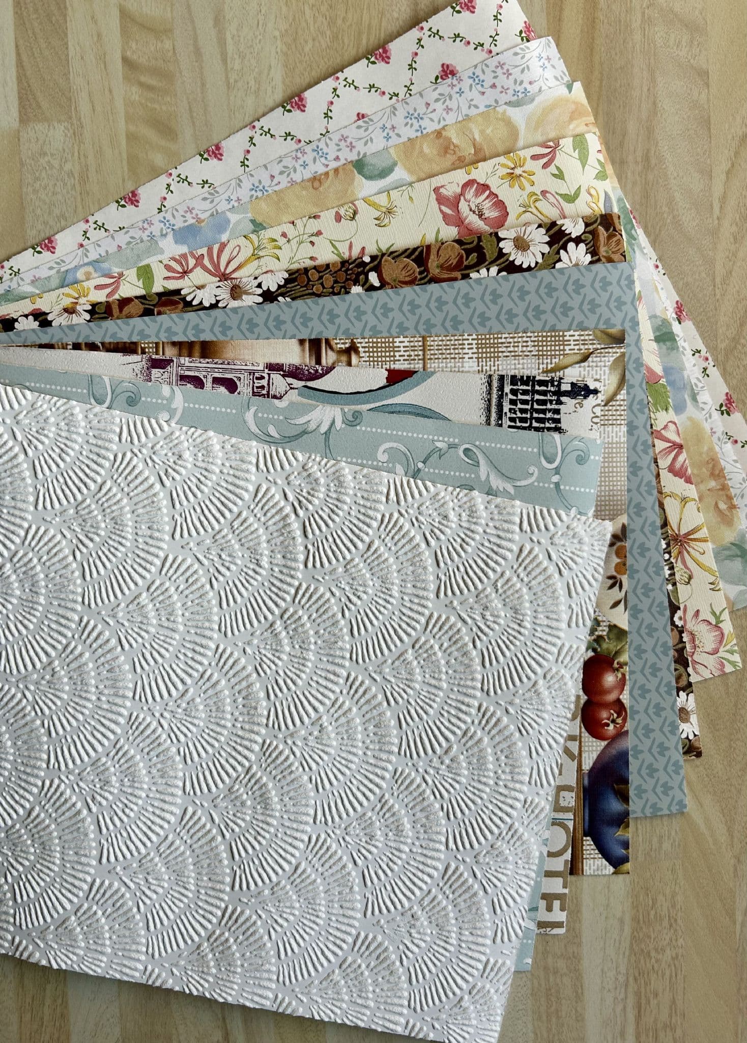 10 A4 sheets cut from vintage wallpaper rolls