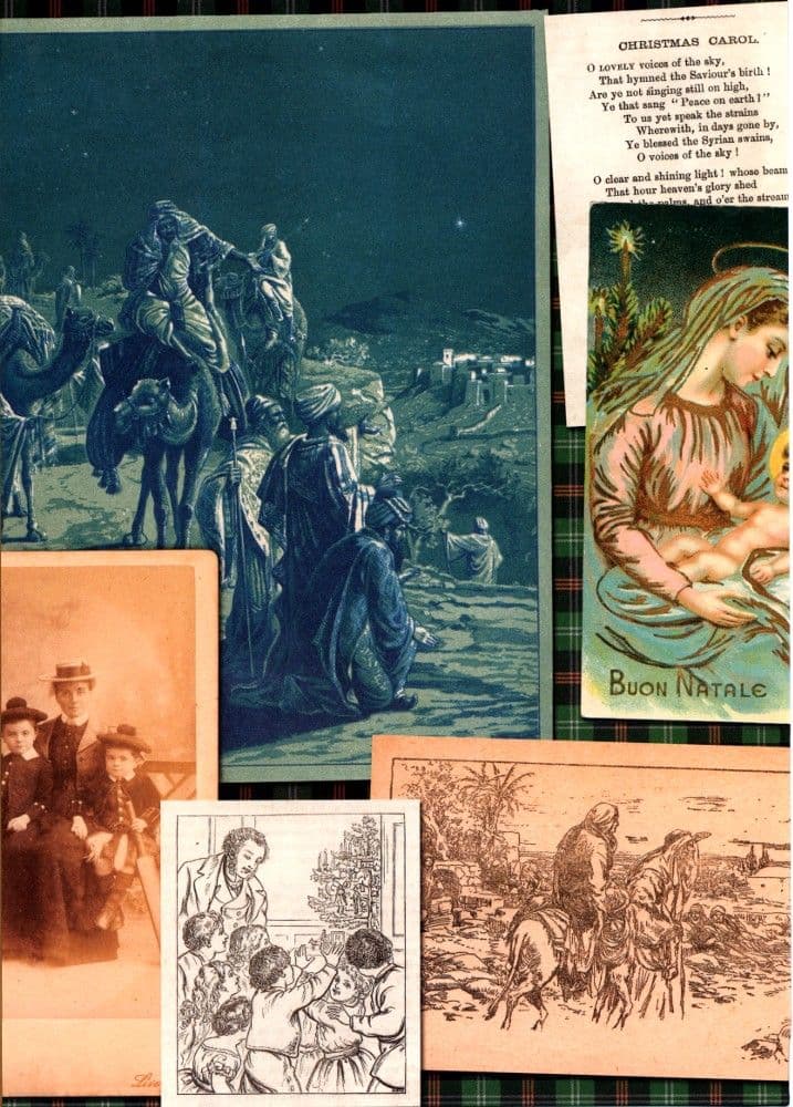 A4 Full colour art paper featuring traditional tartan design and vintage Christmas images.