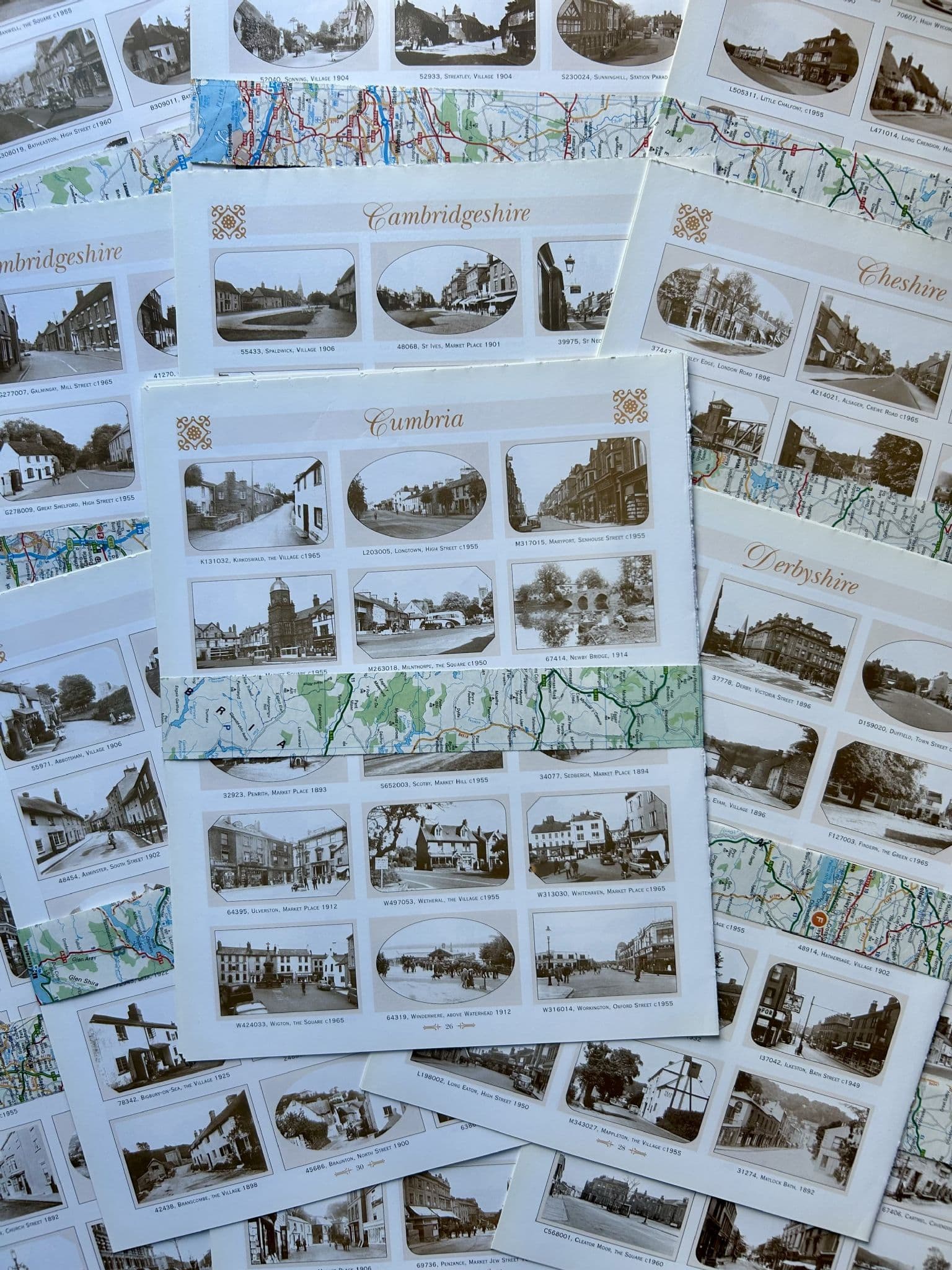 5 randomly selected pages from a postcard catalogue. Images date from late 1800's up to 1950s.